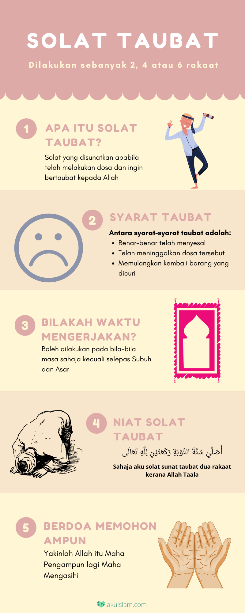 Solat Sunat Taubat ini boleh dilakukan pada bila-bila masa sahaja walaupun pada waktu-waktu yang dilarang mengerjakan solat. Secara lebih rinci syarat-syarat taubat adalah. Setelah itu Rasul membaca ayat Dan juga orang-orang yang apabila melakukan perbuatan keji dan menganiaya diri sendiri mereka ingat akan Allah.